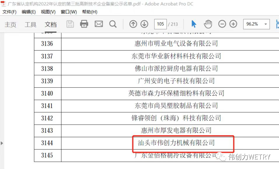 根據(jù)《高新技術(shù)企業(yè)認(rèn)定管理辦法》和《高新技術(shù)企業(yè)認(rèn)定管理工作指引》有關(guān)規(guī)定,現(xiàn)將廣東省認(rèn)定機(jī)構(gòu)2022年認(rèn)定的第三批6378家高新技術(shù)企業(yè)進(jìn)行備案公示。汕頭市偉創(chuàng)力機(jī)械有限公司有限公司名列其中。